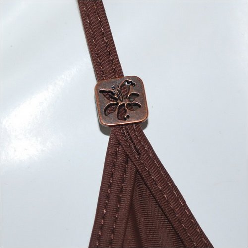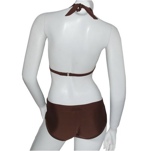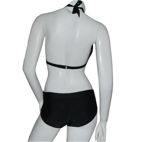 - Halter top with adjustable tie at neck and hook at back.